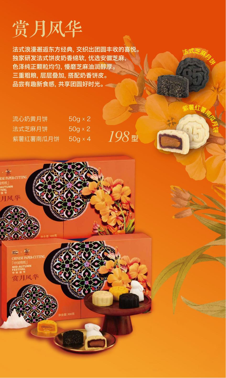 流心奶黄月饼50g*2 紫薯红薯南瓜月饼50g*4 法式芝麻月饼50g*2