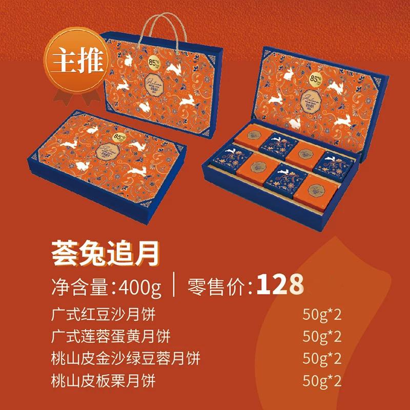 广式红豆沙月饼50g*2 广式莲蓉蛋黄月饼50g*2 桃山皮金沙绿豆蓉月饼50g*2 桃山皮板栗月饼50g*2