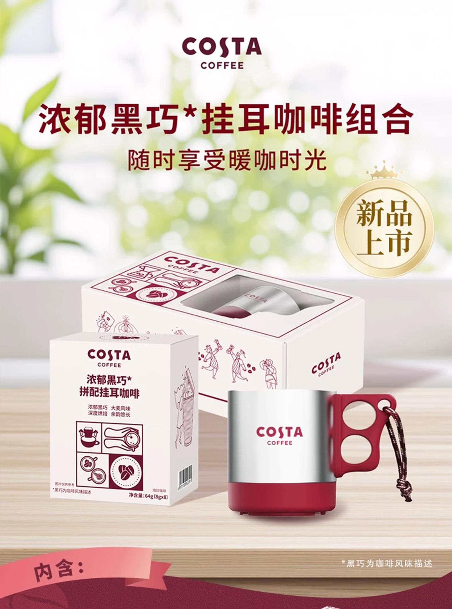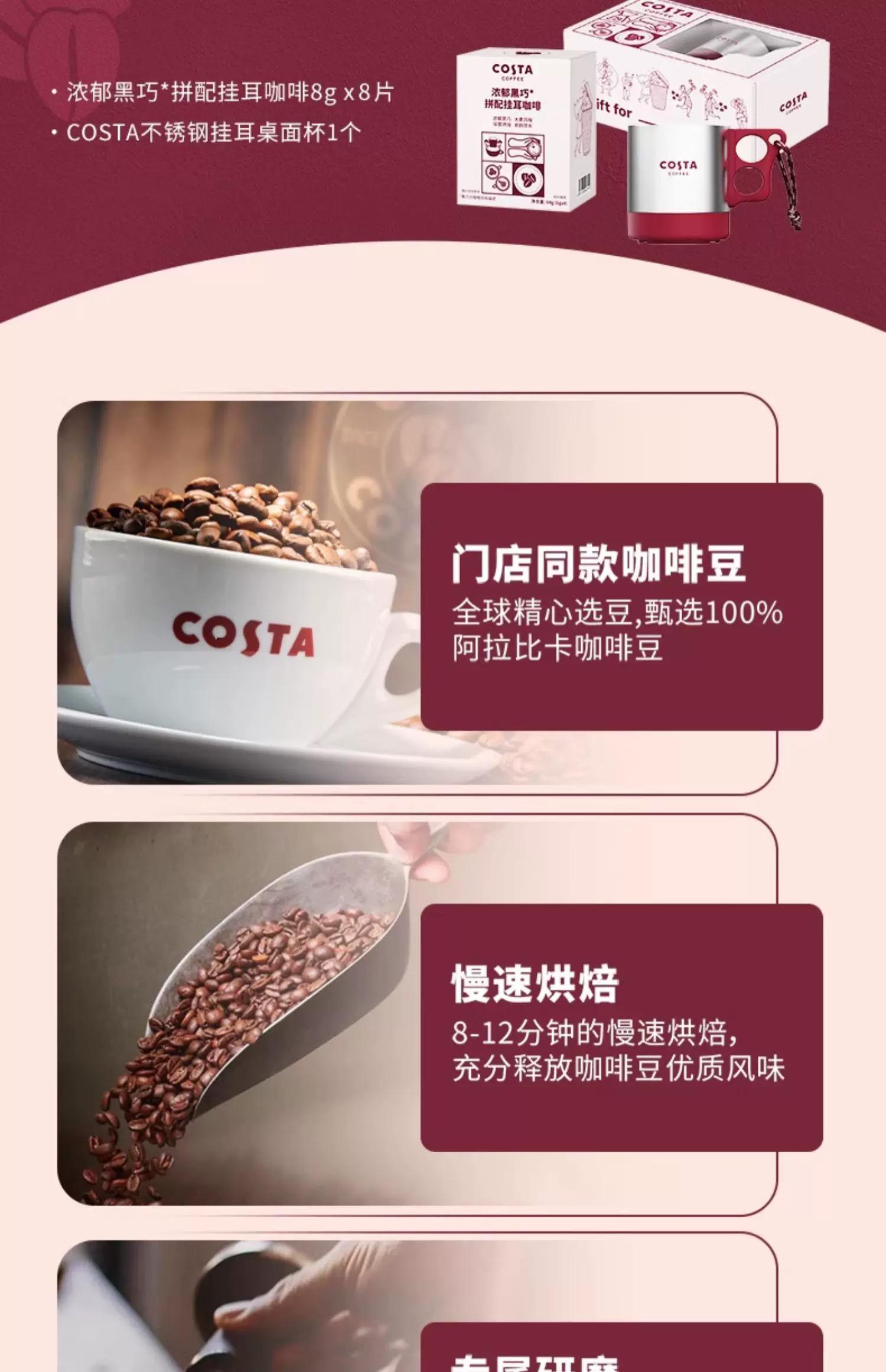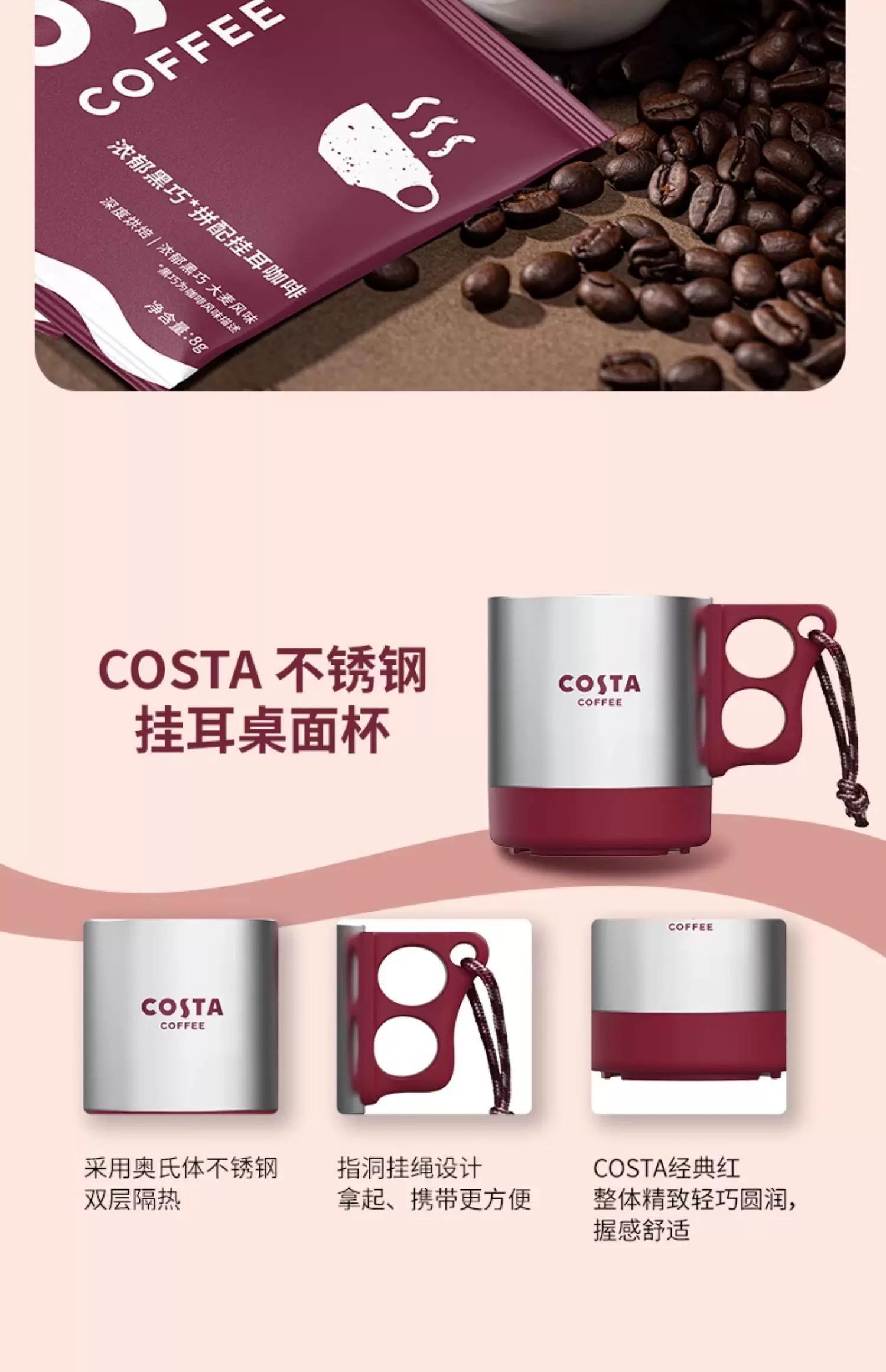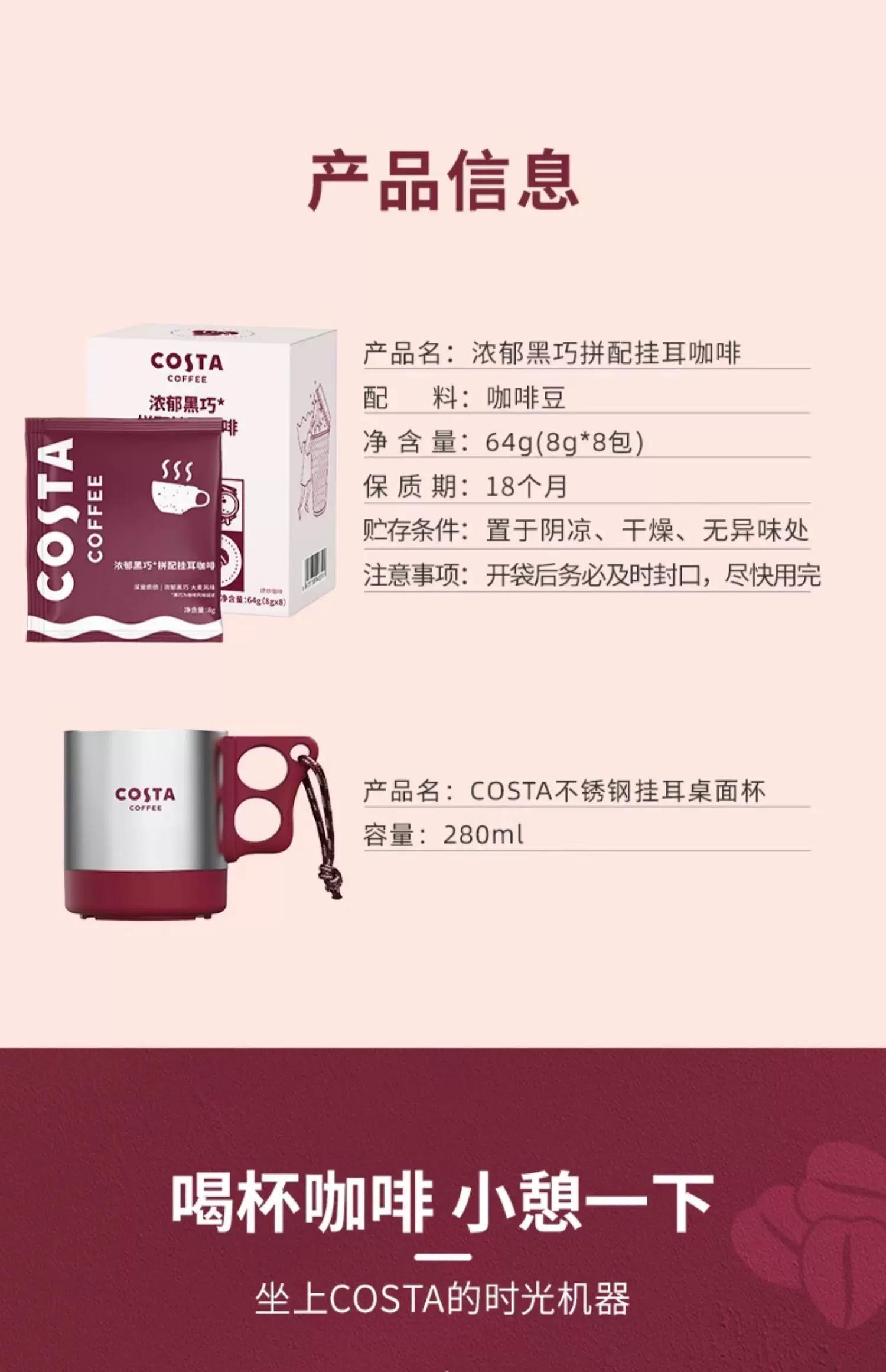 浓郁黑巧挂耳64g(8g*8) COSTA不锈钢挂耳桌面杯280ml