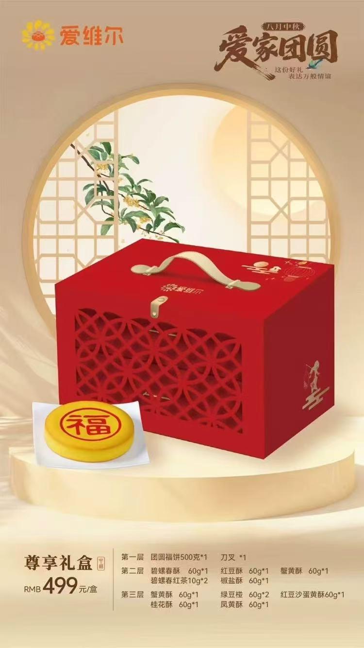 介绍:第一层 团圆福饼 500gx1 第二层 碧螺春酥 60gx1 红豆酥 60gx1 碧螺春红茶10gx2 蟹黄酥 60gx1 椒盐酥 60gx1 第三层 蟹黄酥 60gx1 绿豆椪 60gx2 红豆沙蛋黄酥60gx1 桂花酥 60gx1 凤黄酥 60gx1