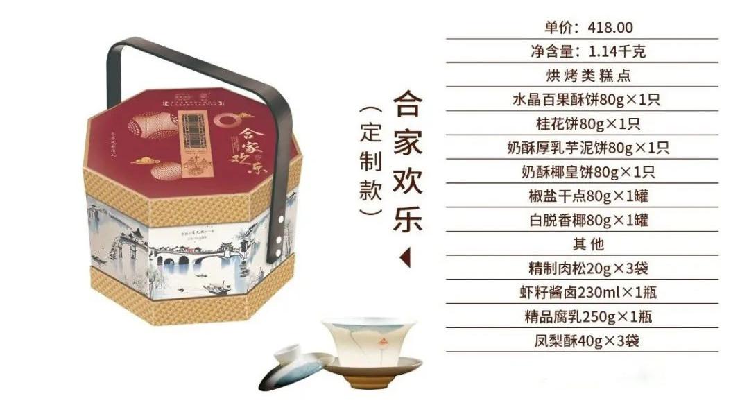 介绍:烘烤类糕点 水晶百果酥饼80gx1只 桂花饼80gx1只 奶酥厚乳芋泥饼80gx1只 奶酥椰皇饼80gx1只 椒盐干点80gx1罐 白脱香椰80gx1罐 其他 精制肉松20gx3袋 虾籽酱卤230mlX1瓶 精品腐乳250gx1瓶 凤梨酥40gx3袋