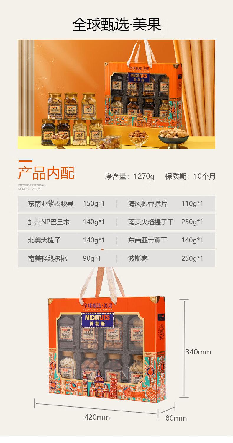 介绍:东南亚紫衣腰果150g*1 海风椰香脆片110g*1 加州NP巴旦木140g*1 南美火焰提子干 250g*1 北美大榛子140g*1 东南亚黄蕉干140g*1 南美轻熟核桃90g*1 波斯枣250g*1
