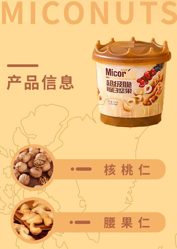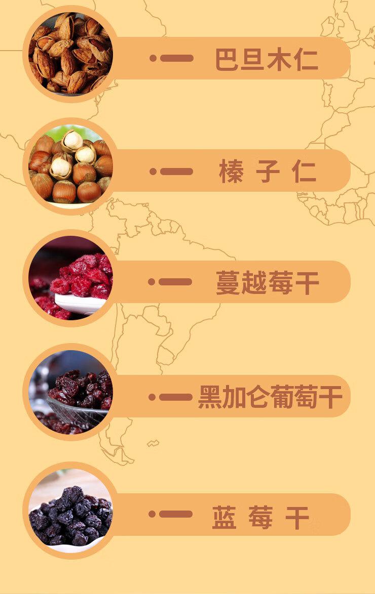 核桃仁、蔓越莓干、黑加仑葡萄干、巴旦木仁、腰果仁、榛子仁、蓝莓干(28克X30罐)