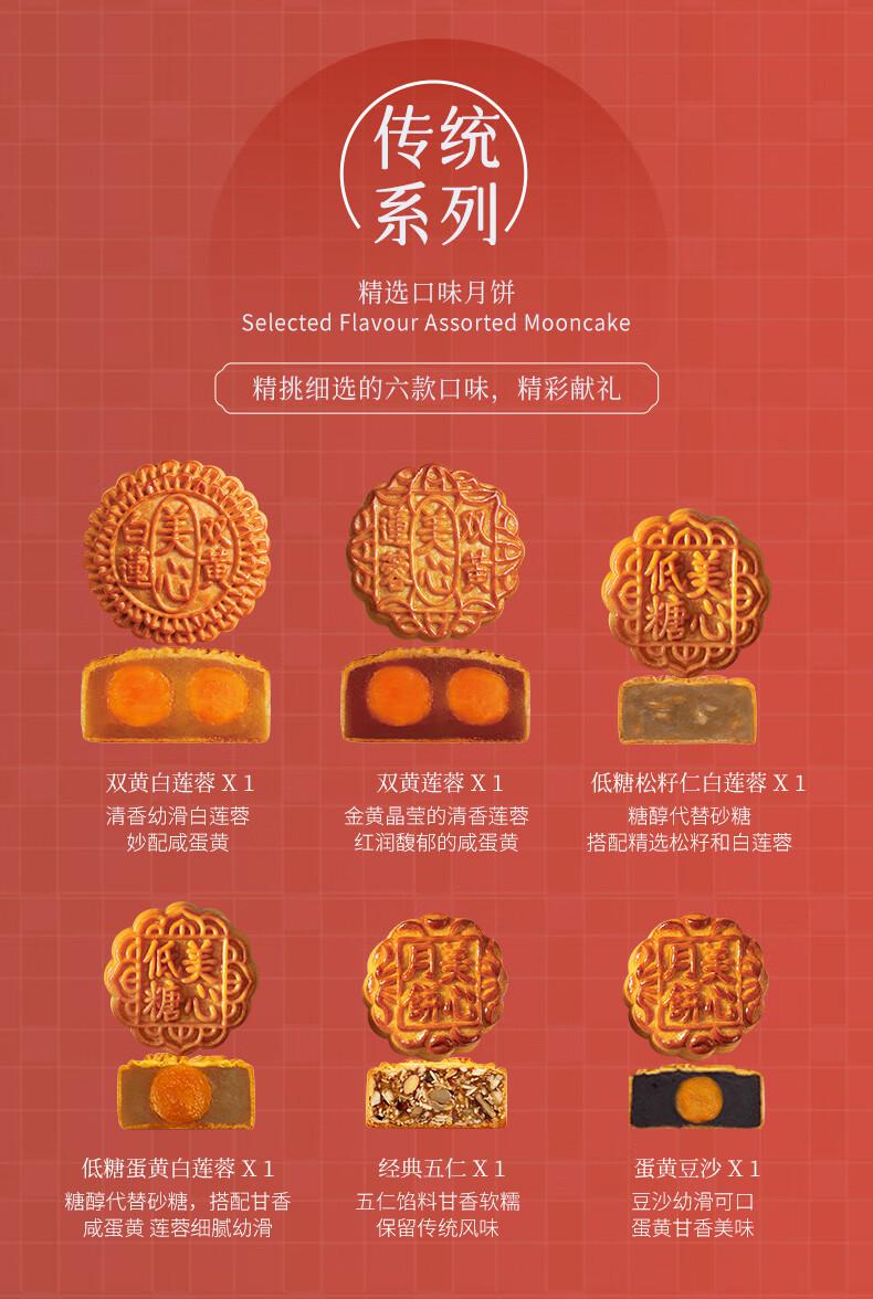 双黄白莲蓉*1 低糖松籽仁白莲蓉*1 双黄莲蓉*1 低糖蛋黄白莲蓉*1 经典五仁*1 蛋黄豆沙*1