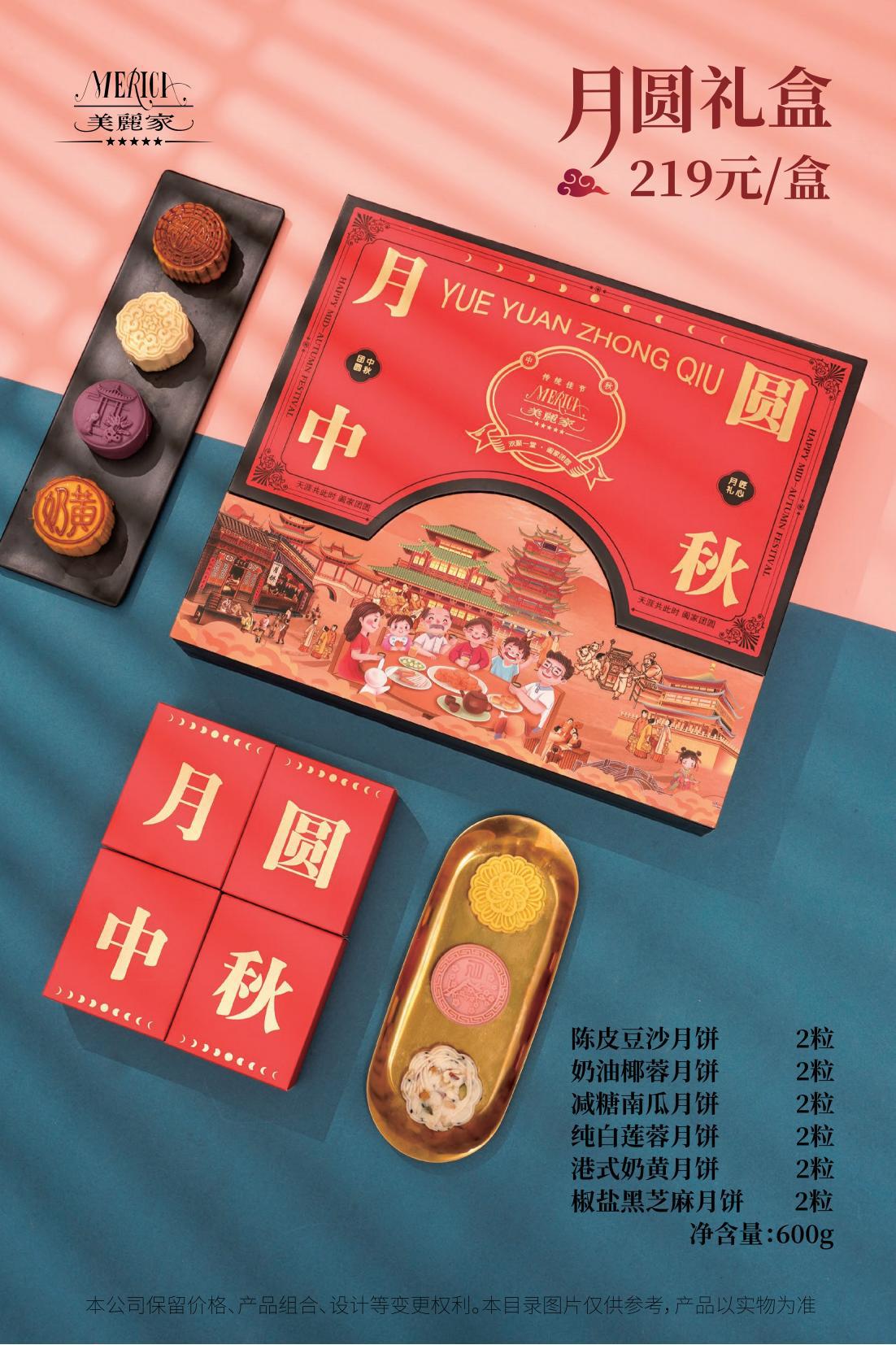 陈皮豆沙月饼*1 奶油椰蓉月饼*1 减糖南瓜月饼*1 纯白莲蓉月饼*1 港式奶黄月饼*1 椒盐黑芝麻月饼*1