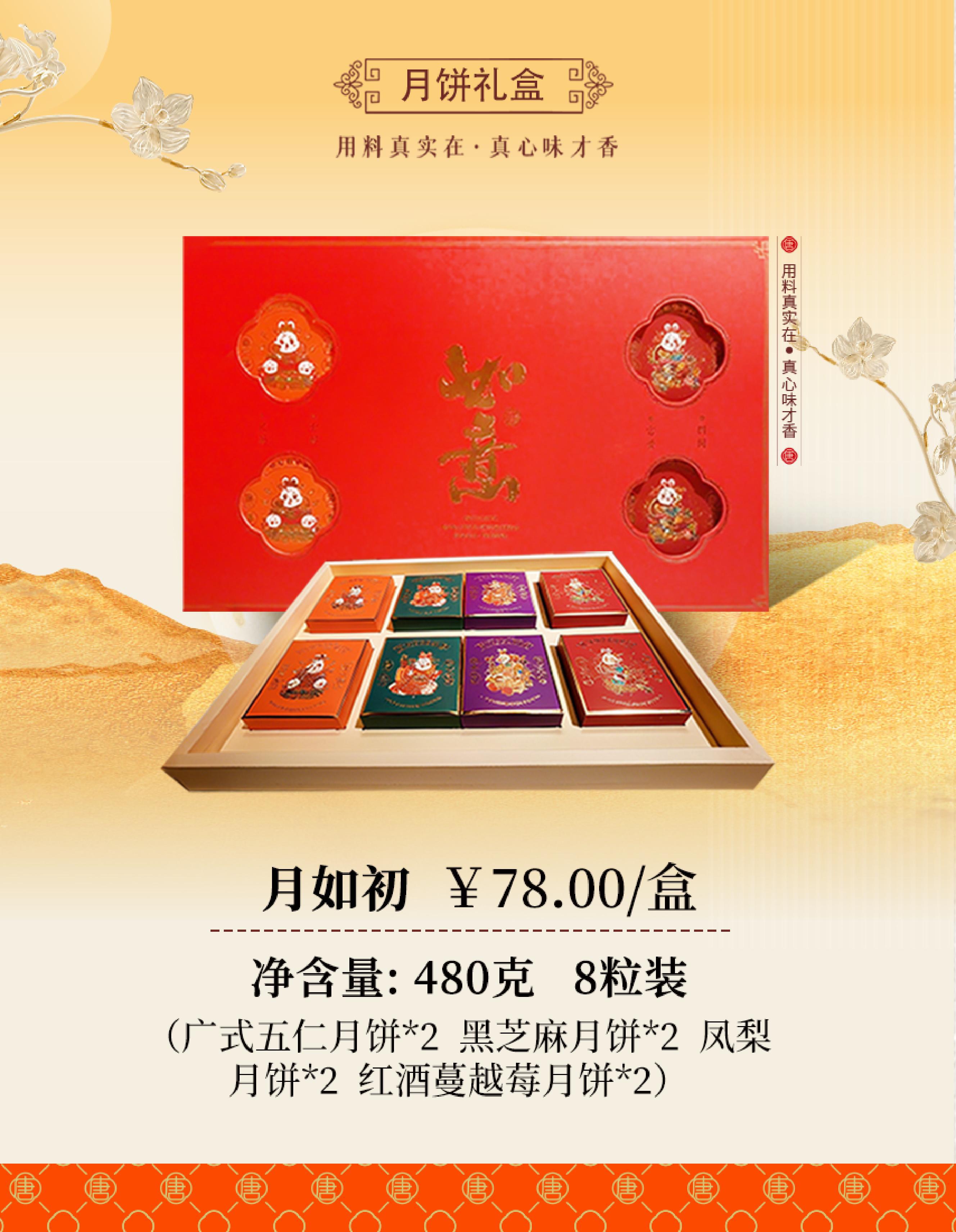 广式五仁月饼*2 黑芝麻月饼*2 凤梨月饼*2 红酒蔓越莓月饼*2