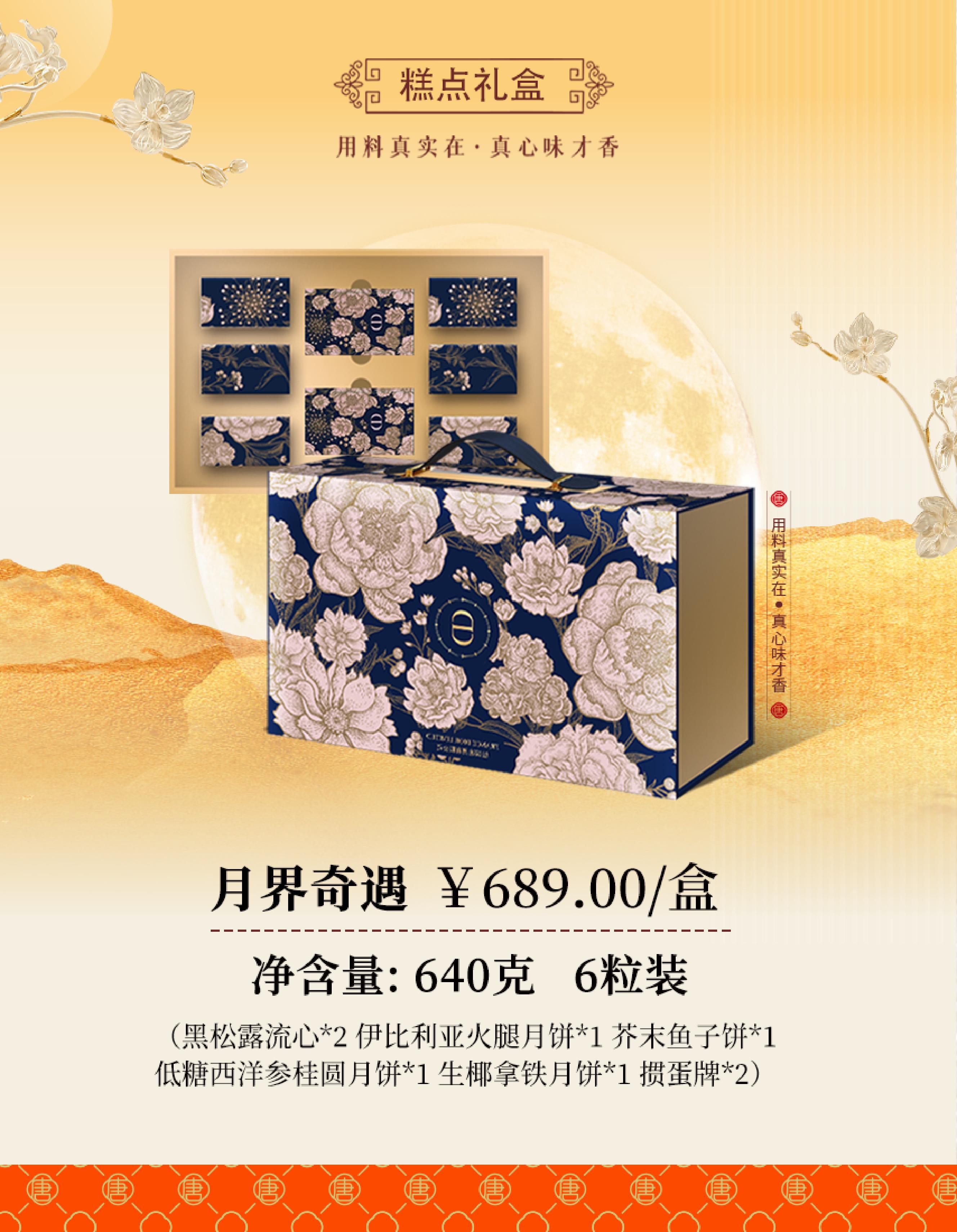 黑松露流心*2 伊比利亚火腿月饼*1 芥末鱼子饼*1 低糖西洋参桂圆月饼*1 生椰拿铁月饼*1 掼蛋牌*2