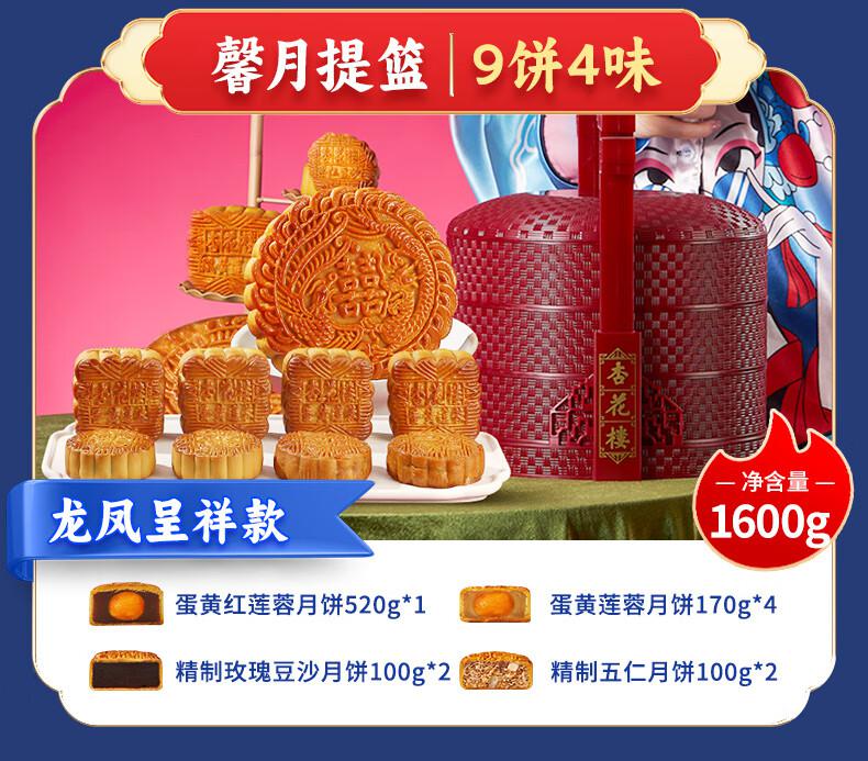 蛋黄红莲蓉月饼520g*1 蛋黄莲蓉月饼170g*4 精制玫瑰豆沙月饼100g*2 精制五仁月饼100g*2