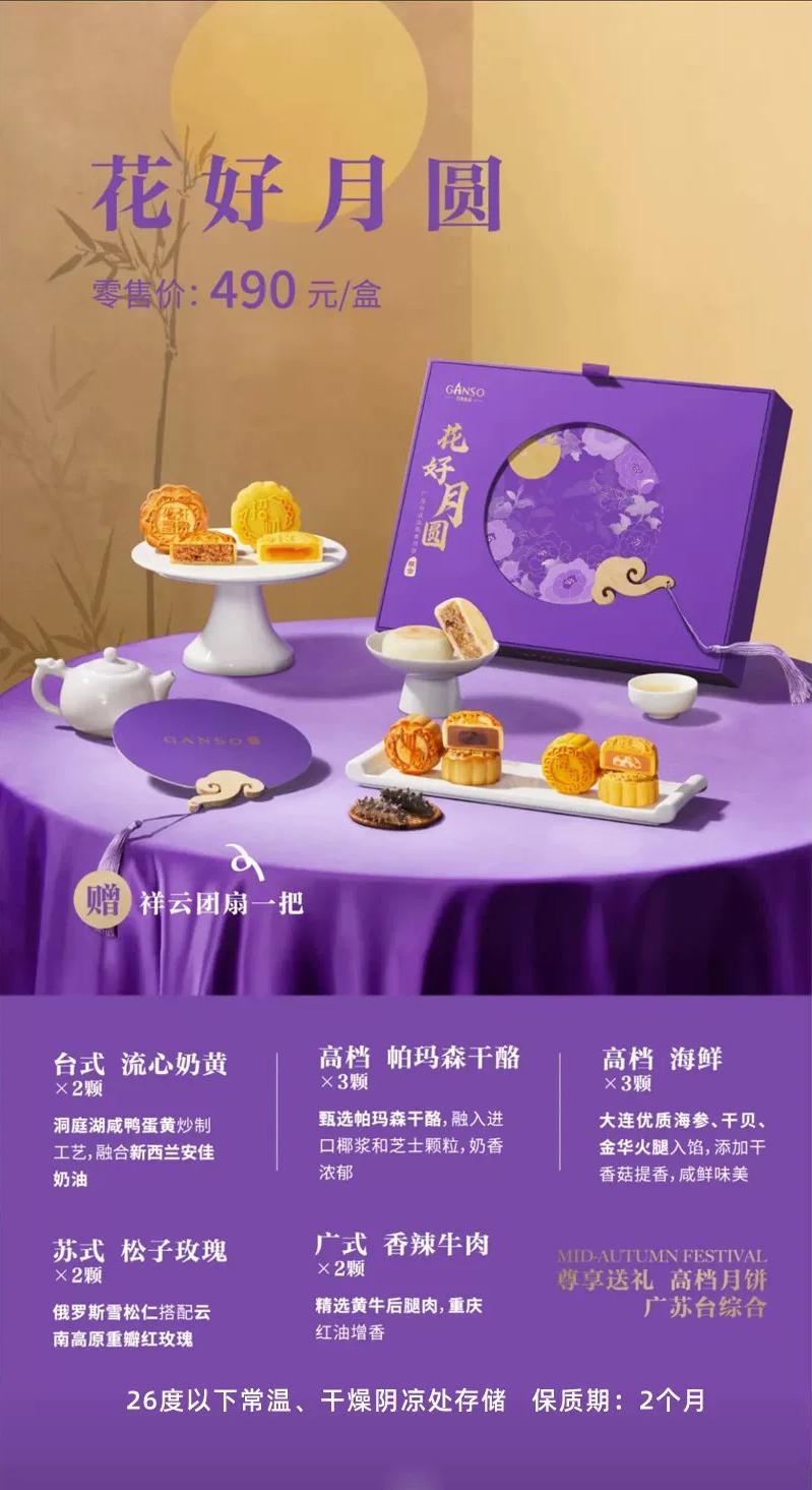 台式流心奶黄*2颗 高档帕玛森干酪*3颗 高档海鲜*3颗 苏式松子玫瑰*2颗 广式香辣牛肉*2颗