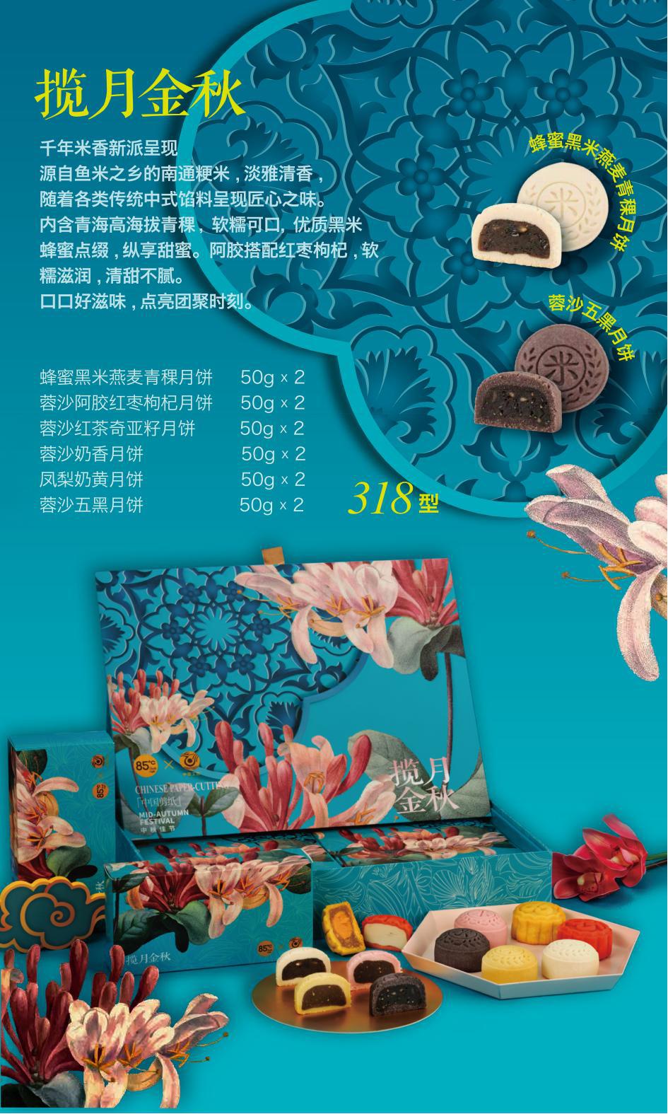 介绍:蓉沙奶香月饼50g*2 凤梨奶黄月饼50g*2 蜂蜜黑米燕麦青稞月饼50g*2 蓉沙五黑月饼50g*2 红茶奇亚籽月饼50g*2 阿胶红枣枸杞月饼50g*2