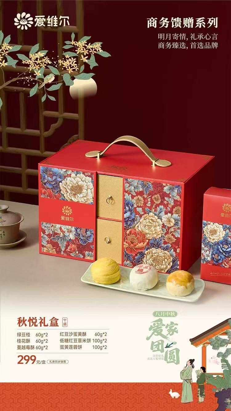 介绍:绿豆椪 60g*2 红豆沙蛋黄酥 60g*2 桂花酥 60g*2 低糖红豆薏仁饼100g*2 蔓越莓酥60g*2 蛋黄莲蓉饼 100g*2
