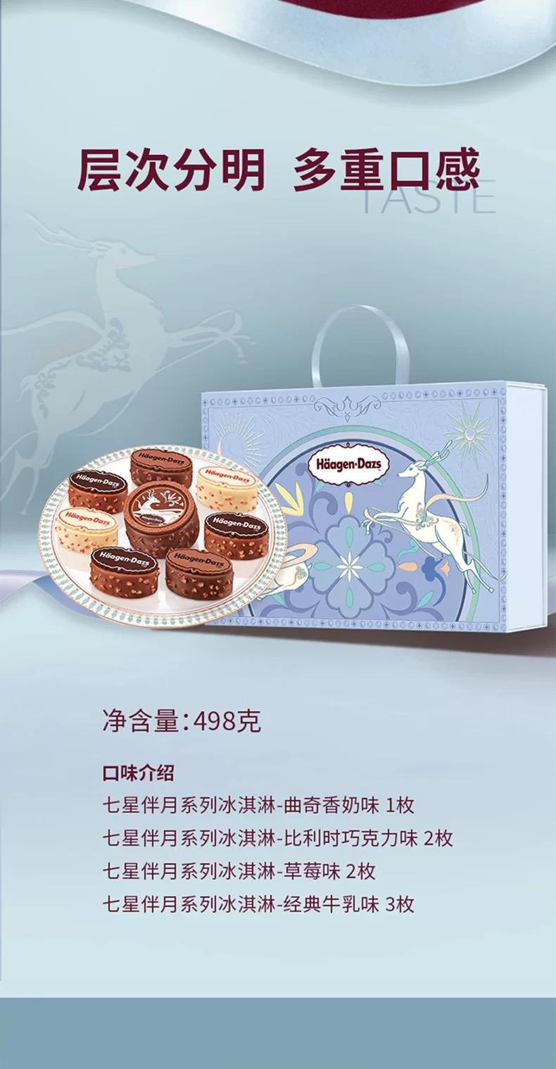介绍:七星伴月系列冰淇淋-曲奇香奶味*1枚 七星伴月系列冰淇淋-比利时巧克力味*2枚 七星伴月系列冰淇淋-草莓味*2枚 七星伴月系列冰淇淋-经典牛乳味*3枚