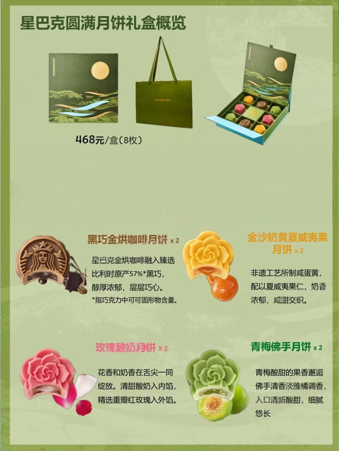 黑巧金烘咖啡月饼*2 金沙奶黄夏威夷果月饼*2 玫瑰酸奶月饼*2 青梅佛手月饼*2